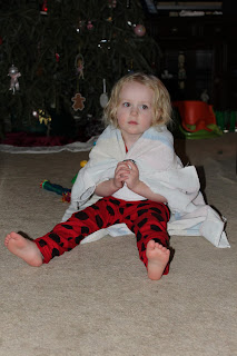 The next morning Santa had spoiled us rotten. Ainsley spent a good hour opening gifts. Freddie banged on one until the paper came off...I opened the rest. Santa didn't really need to wrap those. Funny all the trouble he goes through for a baby that doesn't know the difference.